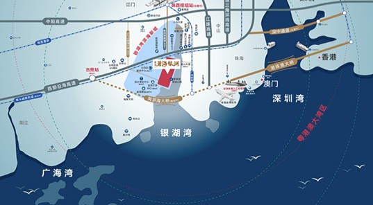 政府擘劃銀湖灣濱海新城千億配套,港珠澳大橋西延線、黃茅??绾4髽颉⒅槲鳂屑~。